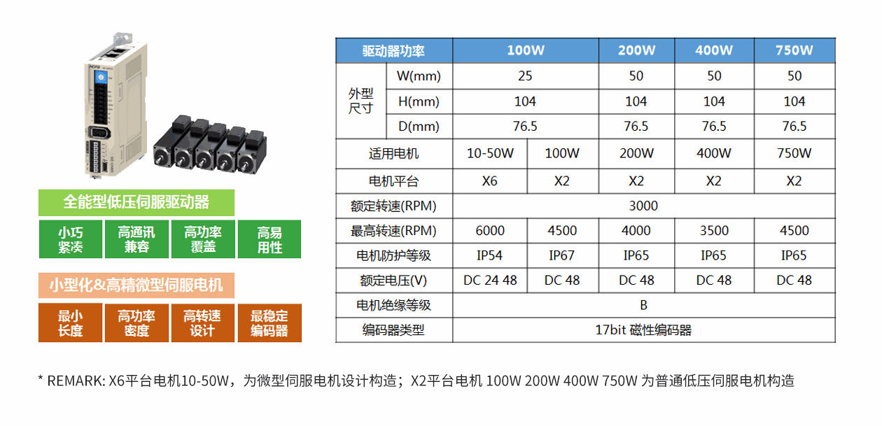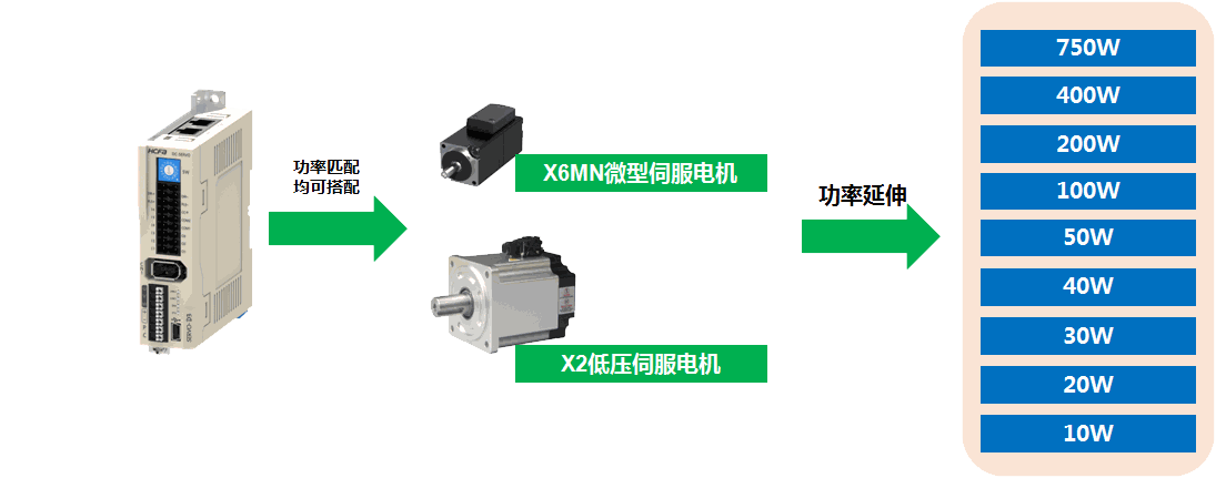 -扩大伺服电机功率范围,最小功率延伸至10W;