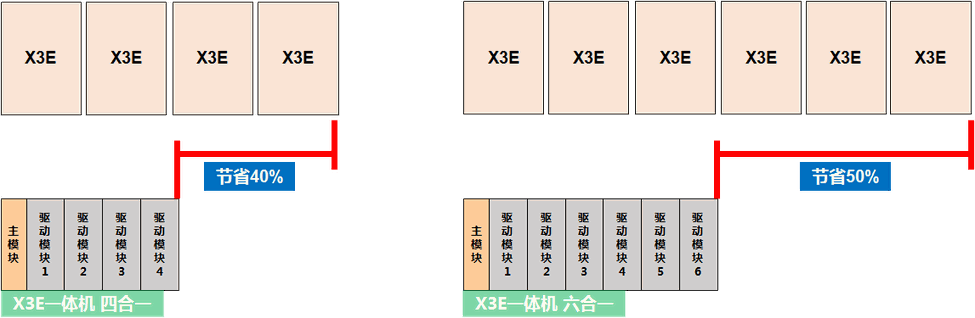 同等功率配置下,四合一节省40% 六合一节省50%;
